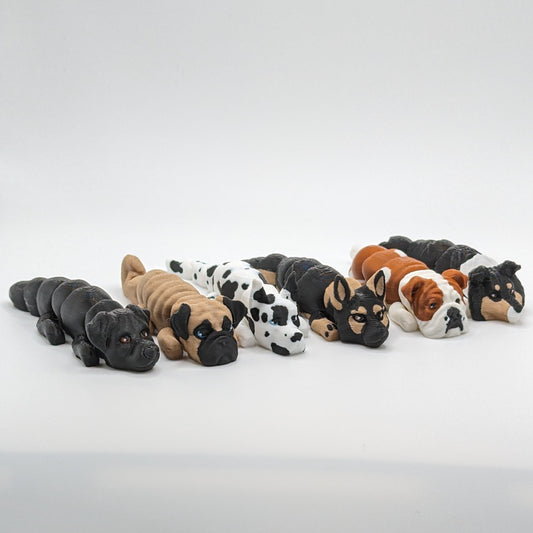 3d Printed Flexi Dogs - English Bulldog, Dalmatian, Black Lab, English Mastiff, Collie