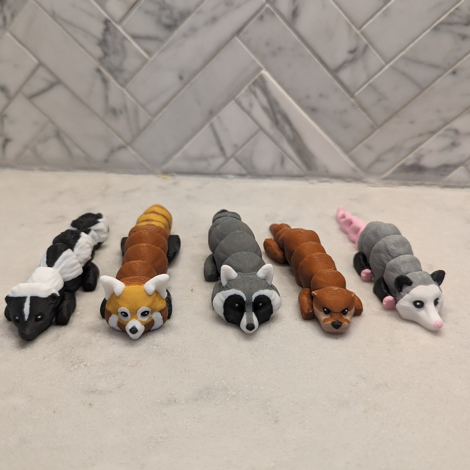 3d Printed Flexi Critters - Skunk, Red Panda, Raccoon, Otter and Possum