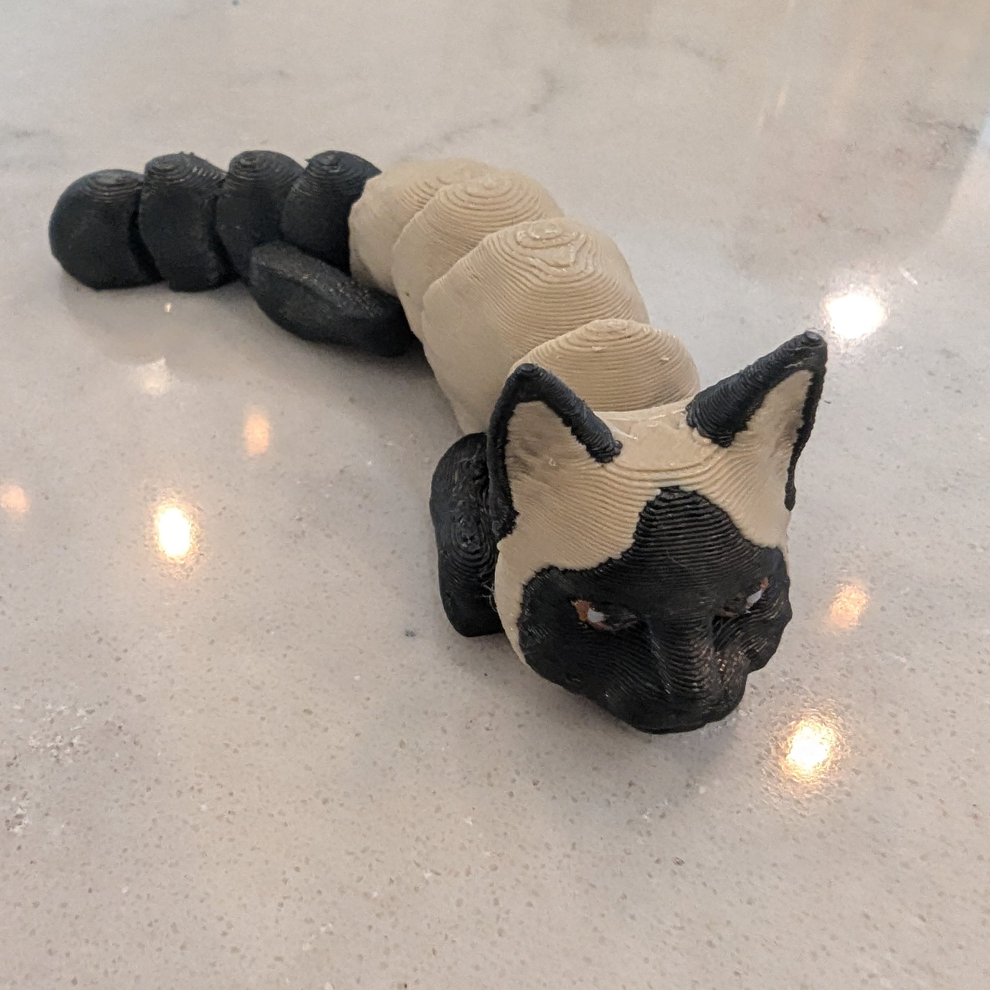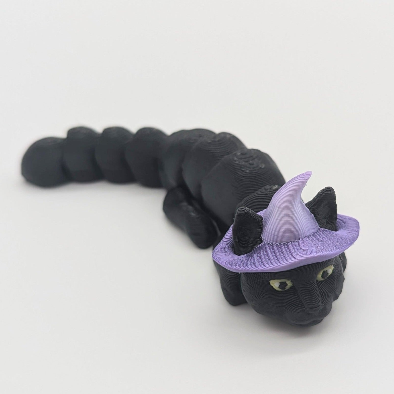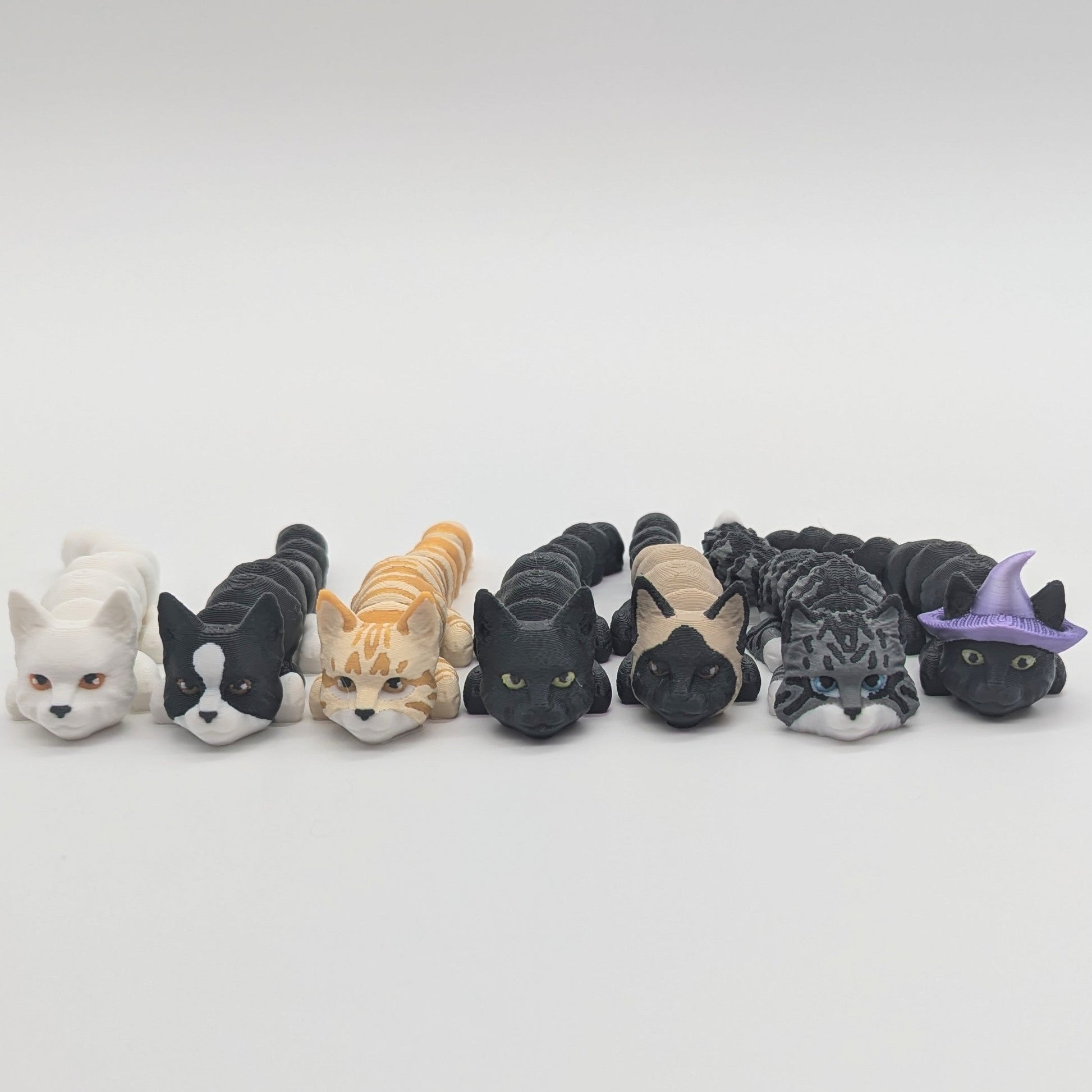 3d Printed Flexi Cats - White, Black and White, Yellow, Black, Siamese, Gray, Black with Purple Hat